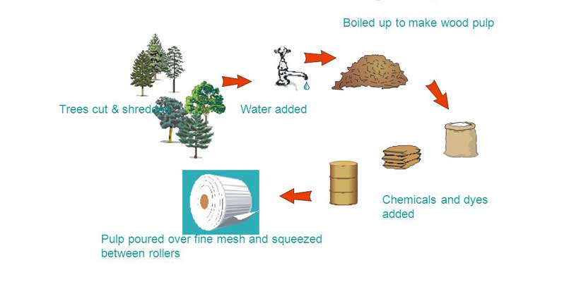 Việc sản xuất giấy cần nguyên liệu thô từ cây gỗ, điều này có thể gây ảnh hưởng đến tài nguyên rừng nếu không được quản lý bền vững. Do đó, việc lựa chọn nguồn cung cấp gỗ có chứng nhận bền vững là rất quan trọng.